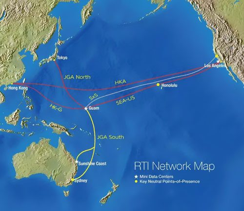 JGA South的初始規(guī)劃容量為36 Tbps,使悉尼的運(yùn)營(yíng)商中立數(shù)據(jù)中心可以銜接到坐落關(guān)島Piti的RTI電纜登陸站/中立數(shù)據(jù)中心。從關(guān)島,JGA South與中立數(shù)據(jù)中心無(wú)縫銜接,包含洛杉磯,加利福尼亞,美國(guó),日本東京和香港特區(qū)等。不僅如此,JGA South還將銜接昆士蘭州的陽(yáng)光海岸,成為有史以來(lái)第一條登陸悉尼以外的澳大利亞東海岸的新電纜。
