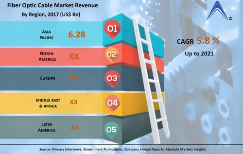 通訊商場研究機(jī)構(gòu)Absolute Markets Insights日前發(fā)布陳述稱,到2021年全球光纖電纜商場規(guī)模將到達(dá)138.7億美元,期間年復(fù)合增率約為5.8%。